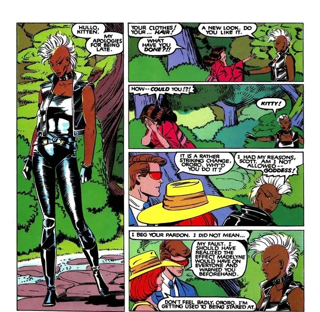 For a team book, cosmic powered heroes can spur intense storylines, but in the longterm, they can also be a dead end. In Claremont's X-Men, the cosmic characters were almost always female; ironically, giving these women unbeatable powers would also necessitate their removal (that is, the removal of either the women, the powers, or both), thereby undermining the original feminist intent. Claremont was famous for his "strong" women, a term that covered both strength and complexity. Throughout his entire seventeen-year run, he managed to develop one particular X-Woman in a manner that evaded the traps awaiting the various Jeans. But rather than avoid the tropes that hampered his cosmic powered women, in this case, he embraced one of them completely, in order to move beyond it: in his portrayal of Storm, he developed a character whose strength proved independent of her mutant power set.