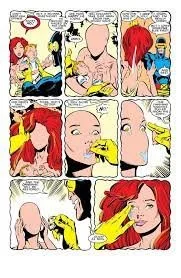 This vision of Madelyne's dismantling handily sums up her experience within the X-Men Franchise itself: she and Jean are in complementary distribution. As the title of the trade paperback collecting the stories in which Mastermind convinces the X-Men that Madelyne is actually Jean (From the Ashes), she is all that could be rescued from Phoenix's funeral pyre, until suddenly, she isn't. What could be a better sign of her secondary status than the cannibalization of every one of her features as part of a project to rebuild Jean Grey? She began as the embodied likeness of a character whose absence left a significant hole in the franchise, and now she has to give that likeness back.