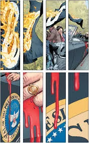 Huh--I never thought to try to read it backwards! If it makes sense at all, that's quite impressive. I can't imagine even Morrison trying so hard to make it read well backwards and forwards, but who knows? Still, even if it is possible, I would guess that reading it in page order is still the best way to get the effect. After all, if watch the bullet hit the president and see his jaw fall apart, that's just excessive attention to bloody violence. But watching it backwards (i.e.., in the order presented on the page) is something entirely different. Thanks, Anish!