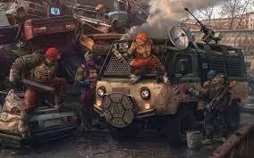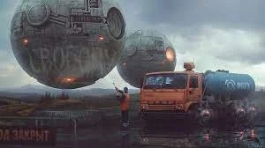 Visitors to his VKontakte and Instagram accounts are treated to photorealistic images of an old Russian women in customary drab garb (ill-fitting sweater, gray skirt, flower-patterned headscarf) feeding flying robot drones as if they were birds, a middle-aged man in knee-high rubber boots carrying rusty buckets of water in each of his arms (including the two robotic ones sprouting form his back), and an orange-jacketed worker using a hose from his clunky water truck to clean off the graffiti from a giant, hovering mechanical sphere that looks like a mini-Death Star. Perhaps the most iconic of all the "Carbongrad" images is a bald, track-suited cyborg carrying a baseball bat studded with bolts and decorated with two stickers, one a robotic version of the woman holding a finger to her lips from the famous World War II "Don't Blab!" poster, the other apparently the eponymous heroine from "The Girl from the Future," both partially obscuring a warning familiar to anyone who has ever stood in front of a Russian subway door: "No leaning!"